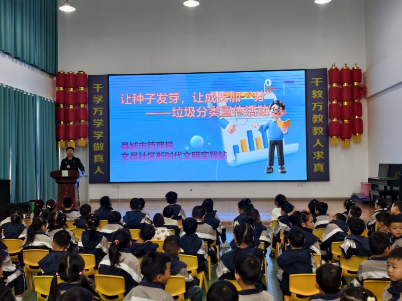 为积极推进县城区垃圾分类工作,培养幼儿环保意识,让"绿色种子"在幼儿心中生根发芽。10月22日上午,县城管局联合文昌社区走进知行幼儿园,开展了一场别开生面的"垃圾分类进校园"主题宣传活动。通过寓教于乐的方式,为百余名师生带来了一堂生动的环保启蒙课。