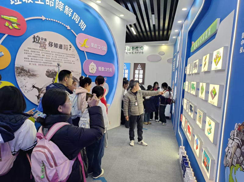 活动现场,宣教馆讲解员以生动鲜活的动画短片为引,搭配趣味互动游戏与实物直观展示,向同学们系统讲解垃圾分类的时代意义、四类垃圾的区分标准及规范投放流程,将专业知识转化为易懂内容,筑牢学子分类认知基础。知识问答环节中,同学们踊跃举手、争相抢答,现场氛围热烈有序,充分展现出对垃圾分类知识的浓厚兴趣与扎实掌握程度,进一步巩固了学习成效。