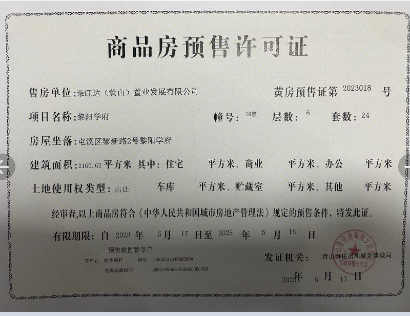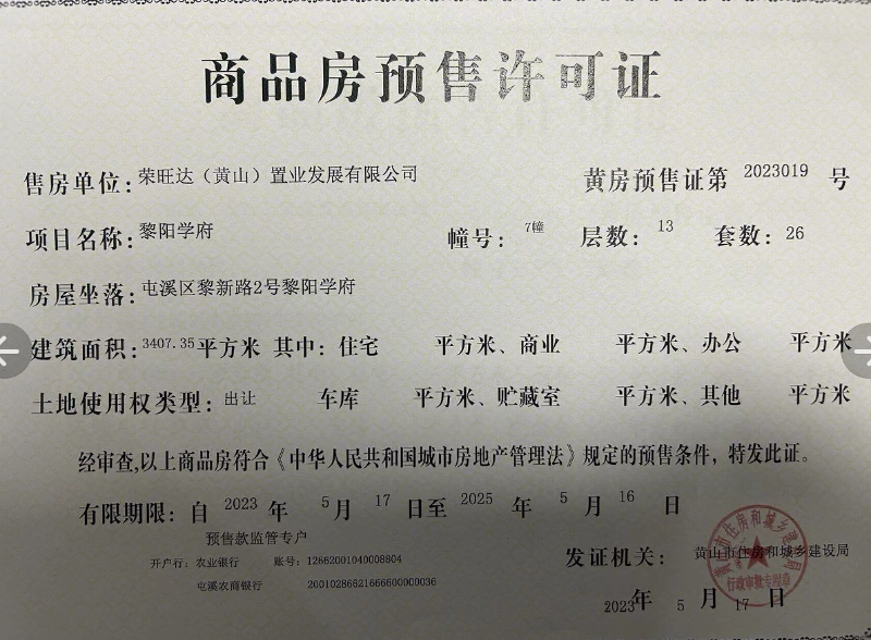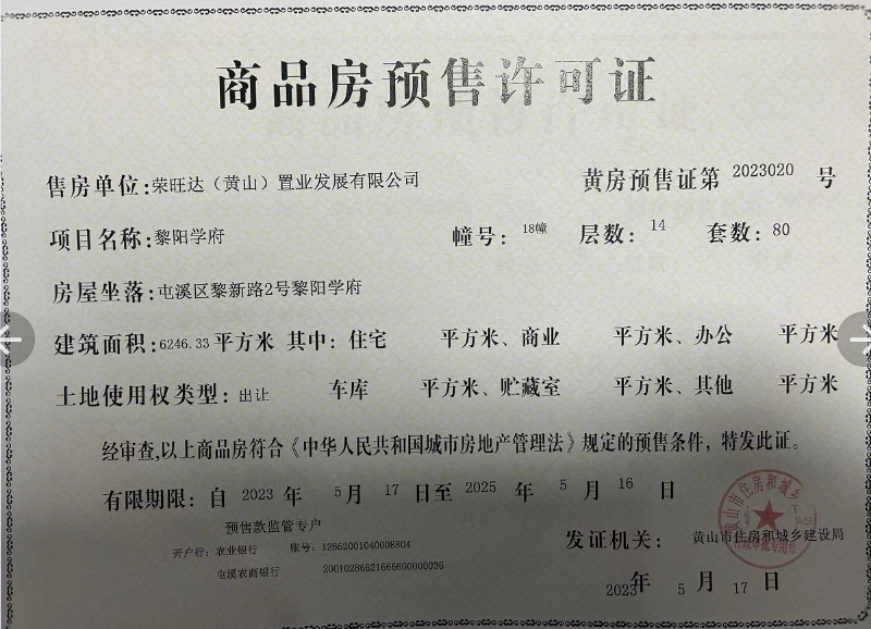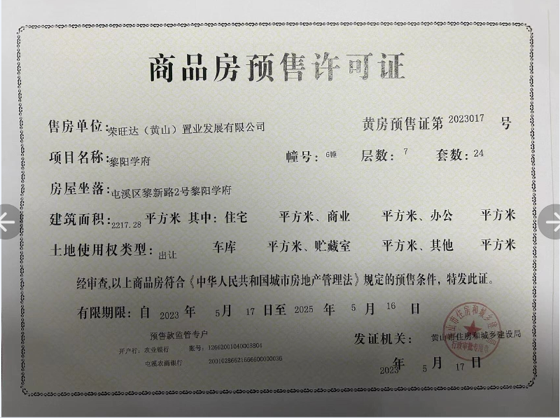 商品房预售许可公告-黎阳学府6.7.10.18幢(2023017-2023020)