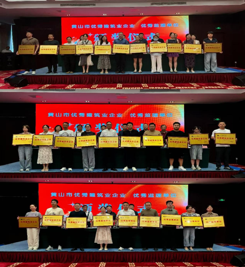 会议宣读了2024年度黄山市优秀建筑业企业及优秀监理单位表彰决定,并对获奖单位代表进行了授牌,为提升市建筑业的整体水平和发展质量树立典型,激发争先创优动力。