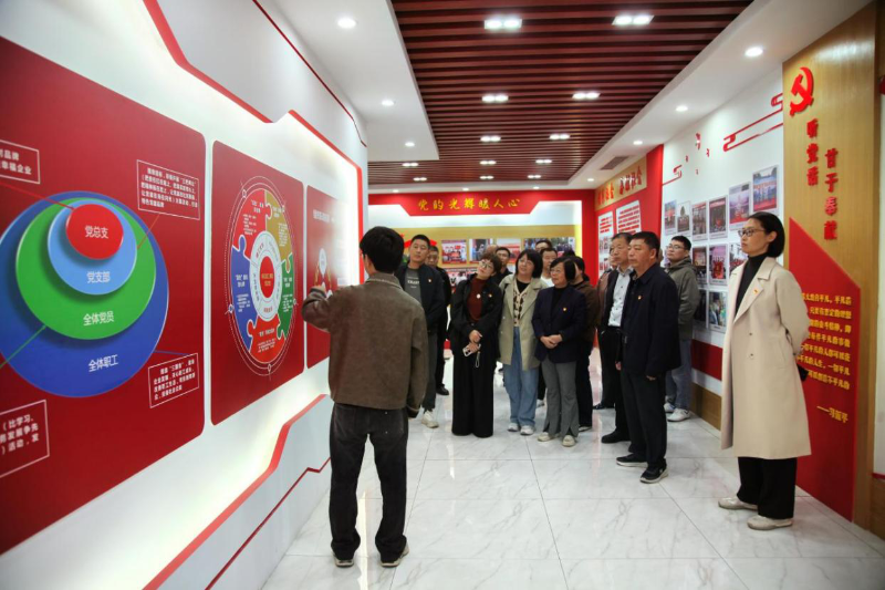 带领全体人员到祁红建工集团党群活动中心参观见学。活动中心内丰富的图文资料、实物陈列以及多媒体展示,系统、生动地再现了祁红建工集团在党组织的引领下,从小到大、由弱到强的发展历程,全面展示了企业将党建工作深度融入生产经营、企业文化、社会责任等方面的创新做法与显著成效,获得了大家的高度评价。