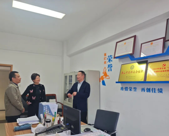 市民政局领导及相关人员一行查看了协会办公环境和制度建设情况。市房协会长周盛扬介绍了协会基本情况,秘书长华秋玲系统汇报了协会党组织建设、服务政府、服务企业、招商引会、桥梁纽带作用及行业自律等工作的开展情况。