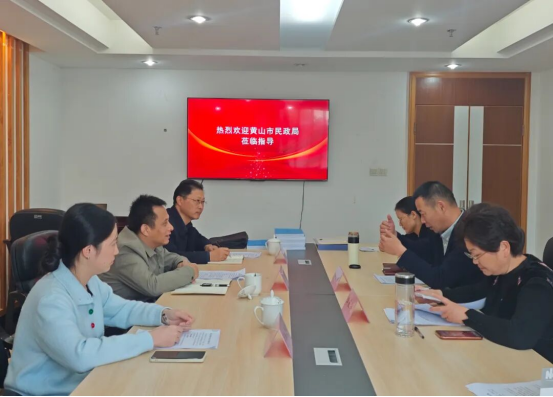 2025年11月13日,黄山市民政局局长詹栩、四级调研员曾新文、工作人员卢孙笑雨一行3人莅临市房地产业协会调研指导,协会会长、秘书长及协会工作人员参加座谈。