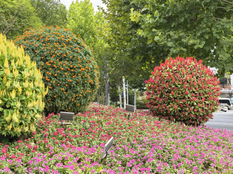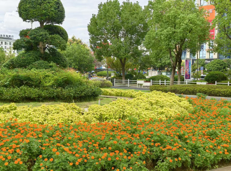 节前开展公园、绿地环境整治活动,对乔灌木疏枝整形,绿篱、草坪实施修剪;对绿地杂草进行拔除,清除枯枝败叶;做好浇水养护,保障苗木长势。美观的色块、平整的绿篱、流畅的造型,绿意盎然的园林景观给城市带来美感。