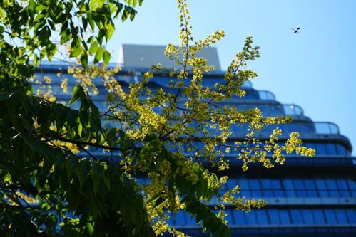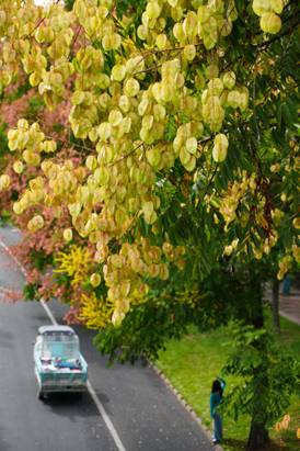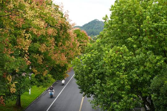 当第一阵黄金雨在云海路的凉风中洒落时,秋天的脚步才算真正近了。