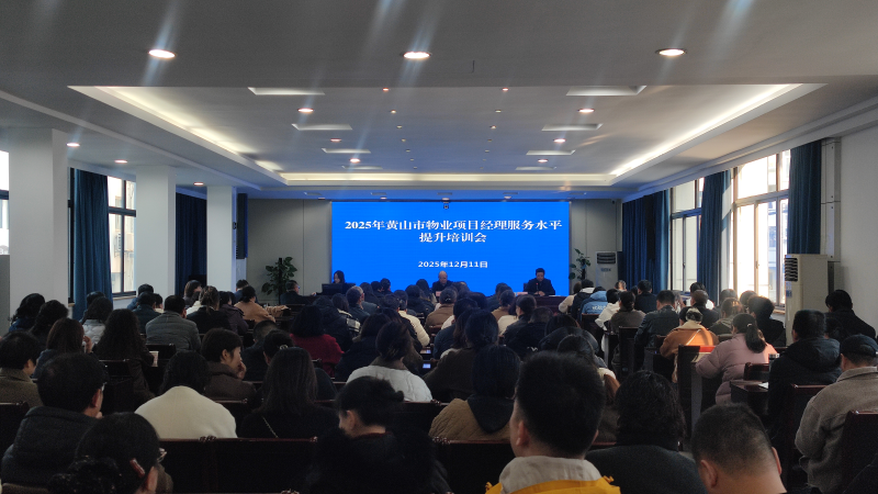 12月11日上午,2025年黄山市物业项目经理服务水平提升培训班在黄山市住建局正式开班。此次培训由市物业管理处(市房地产交易中心)牵头主办、市物业管理协会协办,市住建局分管领导及相关科室负责人、各区县住建局(房管部门)代表及全市150余名物业项目经理齐聚一堂,通过系统学习与深度交流,为提升行业服务品质、助力基层治理创新注入强劲动力。