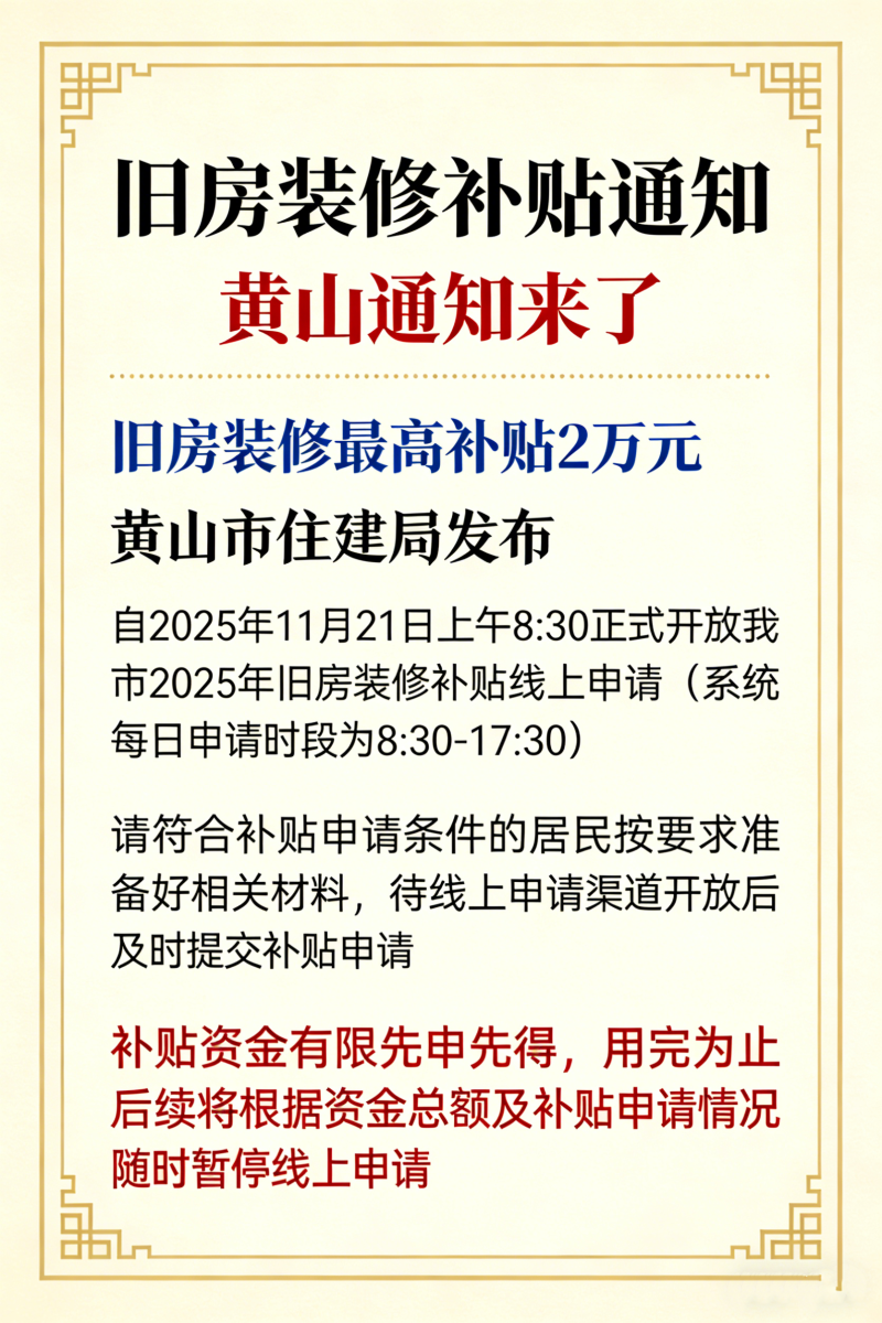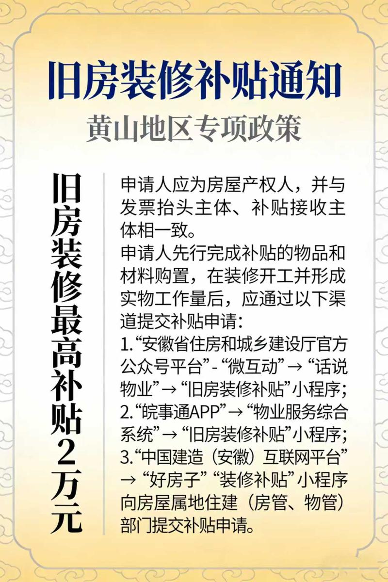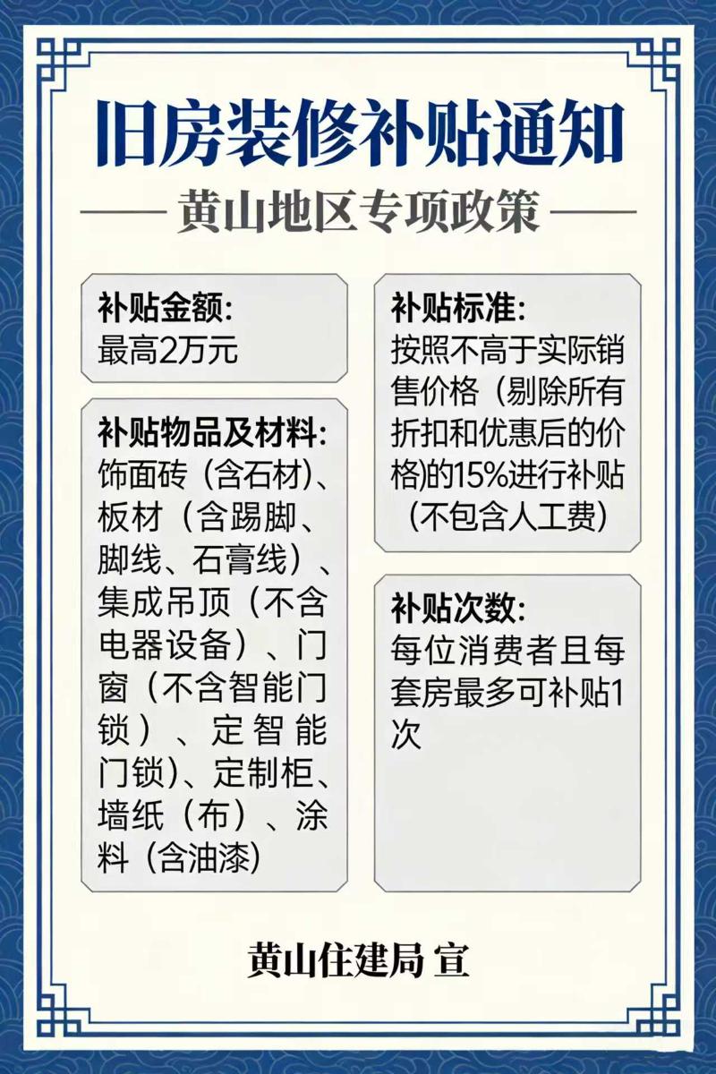 【图片解读】一图读懂:《黄山市2025年个人消费者旧房装修购置所用物品和材料补贴工作》政策解读